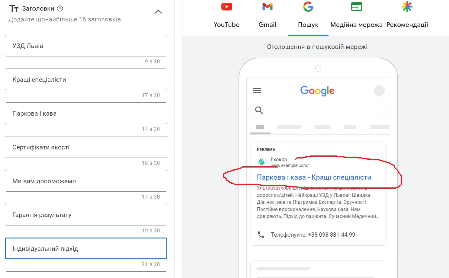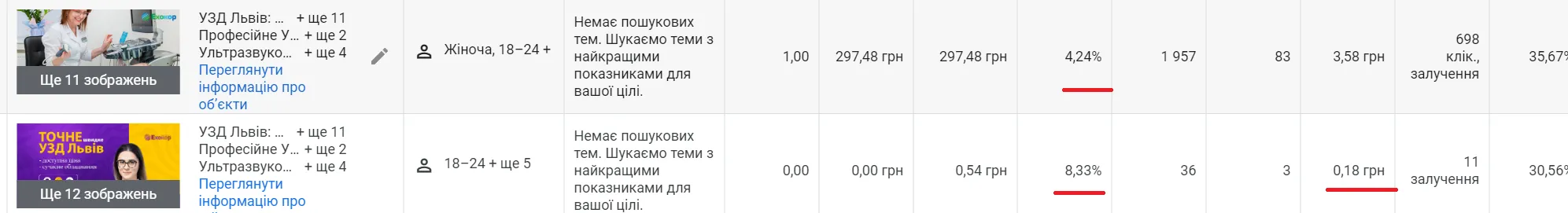 Усі підрядники, що працювали з клінікою, змінювали семантичне ядро, додавали ключові слова, щось прибирали, змінювали оголошення. Але результат залишався приблизно однаковим.